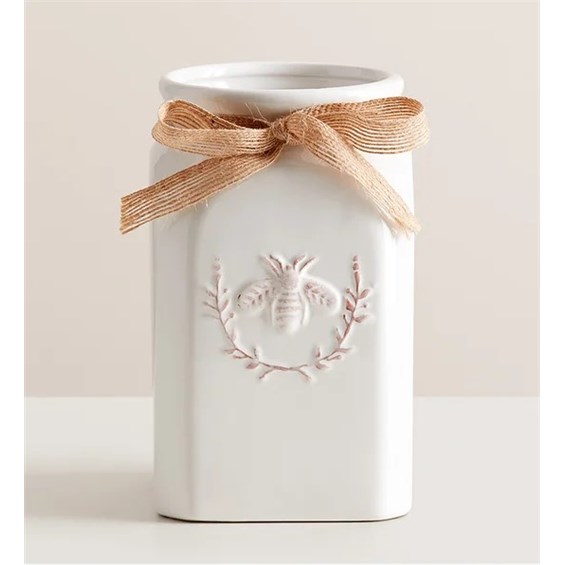 Get them buzzing with our charming bouquet! A garden-fresh gathering of blooms in sweet shades of lavender, purple, peach and pink come together for a mix of color and texture. Designed in our Sweet As Can Bee artisanal vase, featuring an adorable honey bee and raffia bow, it’s a gift that adds quaint beauty to any decor.